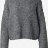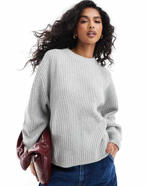 ASOS DESIGN – Gerippter Grobstrick Pullover in Grau mit Rundhalsausschnitt | ASOS