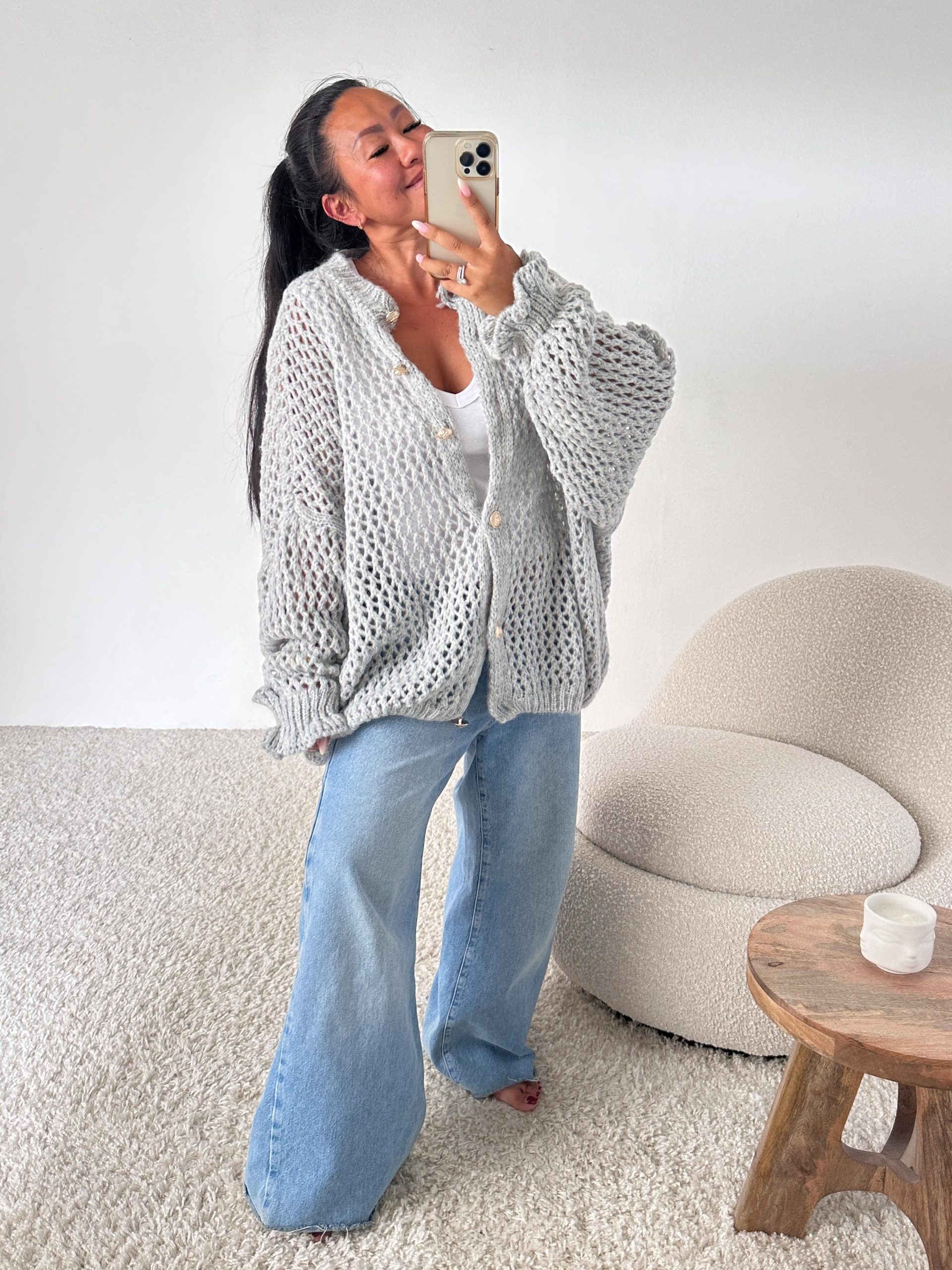 Oversize Grobstrick FLAUSCHI Cardigan NOLA Hellgrau