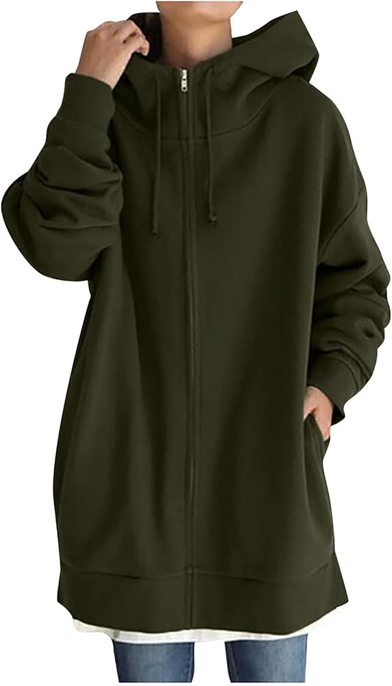 Damen Kapuzen Sweatshirt, Reißverschluss, Sweatshirts, Oversize, Hoodie, Damen, mit Kordelzug, Longshirt, reine Farben, Streetwear, Pullover mit …