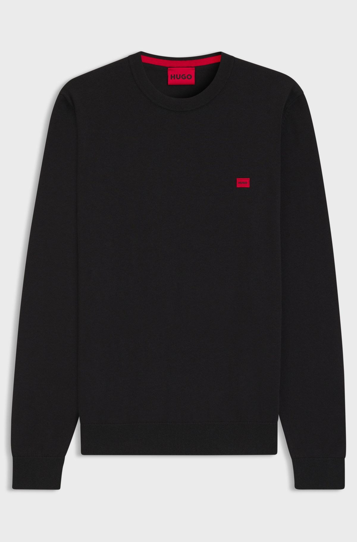 HUGO Pullover aus Baumwolle mit rotem Logo Label Schwarz