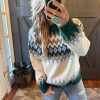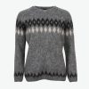 Damen Vintage Island Pullover Weicher warmer geometrischer Zopf * mit Stehkragen, Langarm Winterpullover in Grau & Weiß, Gemütliche Casual formelle …