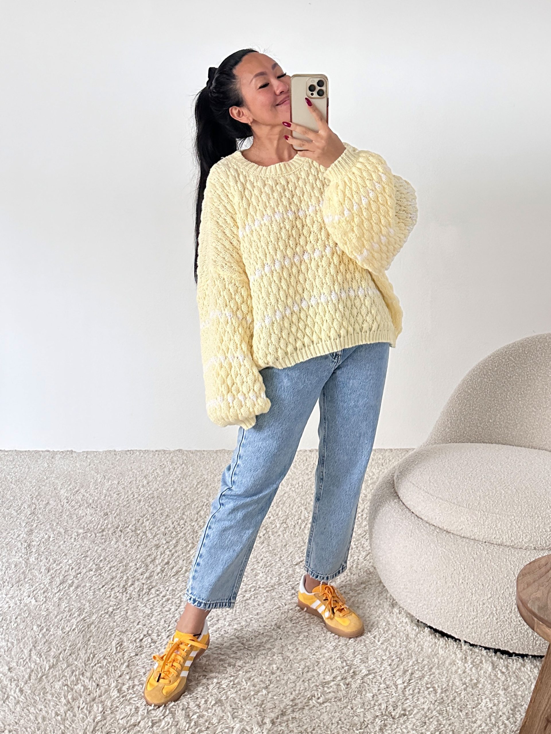 Cropped Grobstrick Pullover ISABELLA Gelb