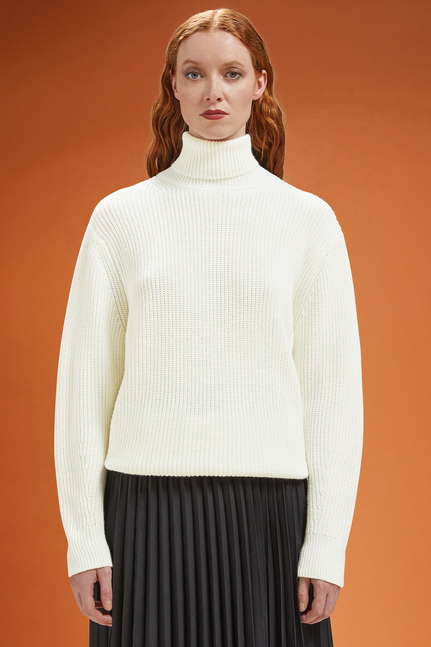 Damen Pullover mit hohem Kragen aus englischem Rippstrick in normaler Passform