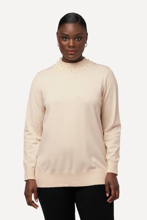 Pullover, Perlen, Stehkragen, Langarm, weicher Feinstrick, vanille | Ulla Popken