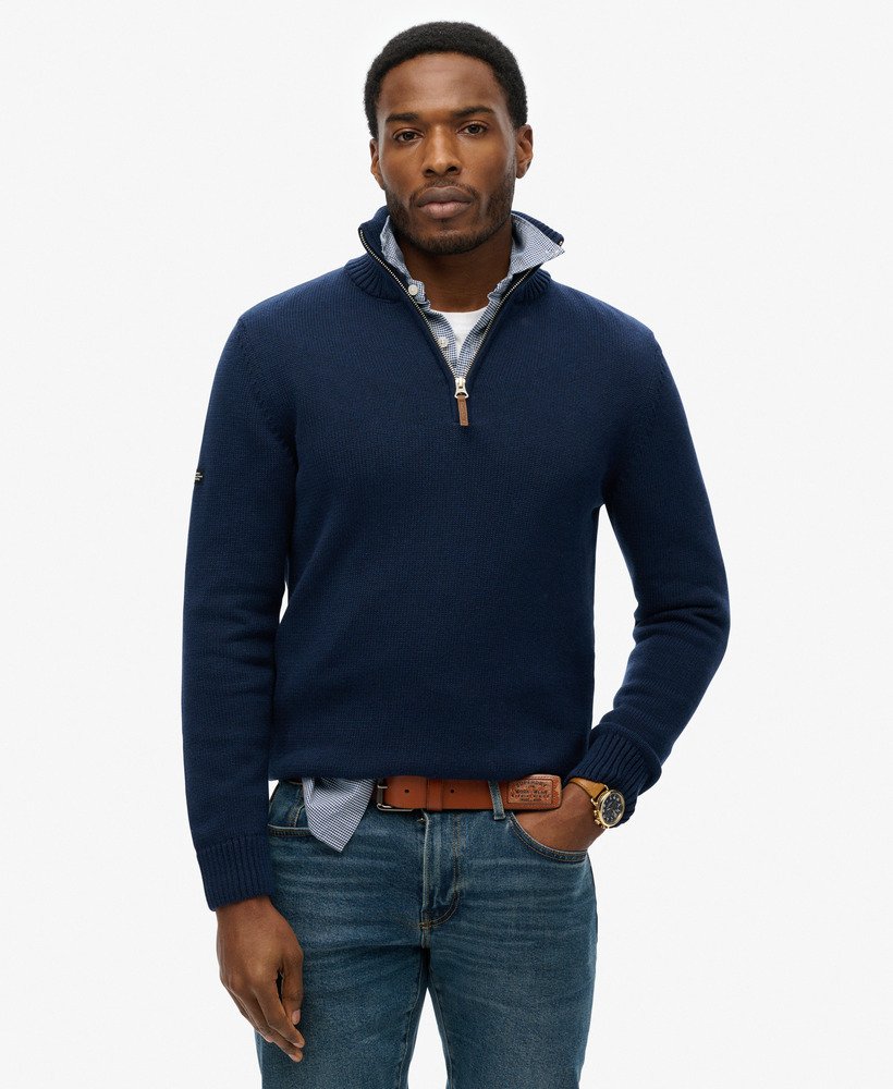 Strickpullover aus Baumwolle mit halbem Reißverschluss indigoblau meliert für Herren | Superdry DE