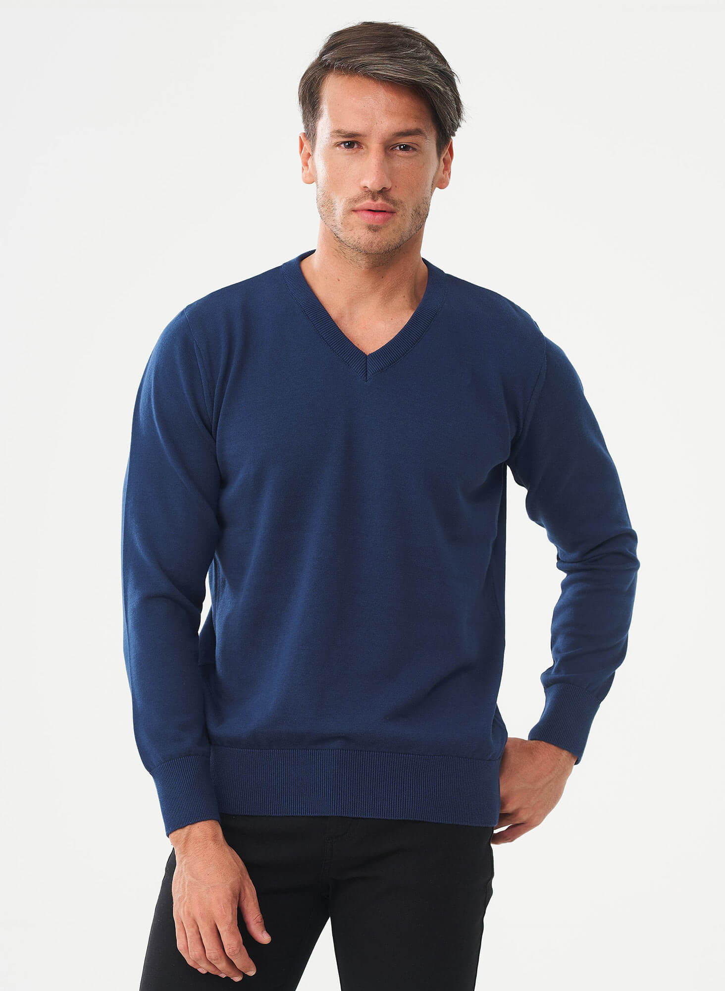 Strickpullover mit V Ausschnitt aus Bio Baumwolle navy