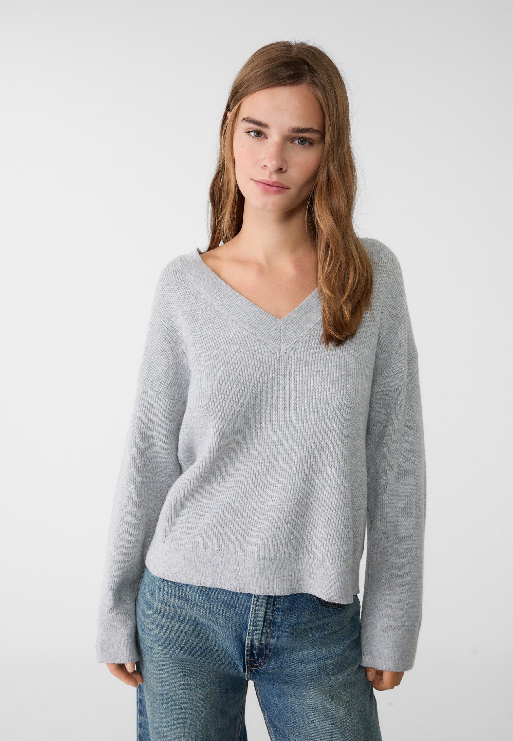 Stradivarius FELTED V NECK Strickpullover grey/grau Zalando