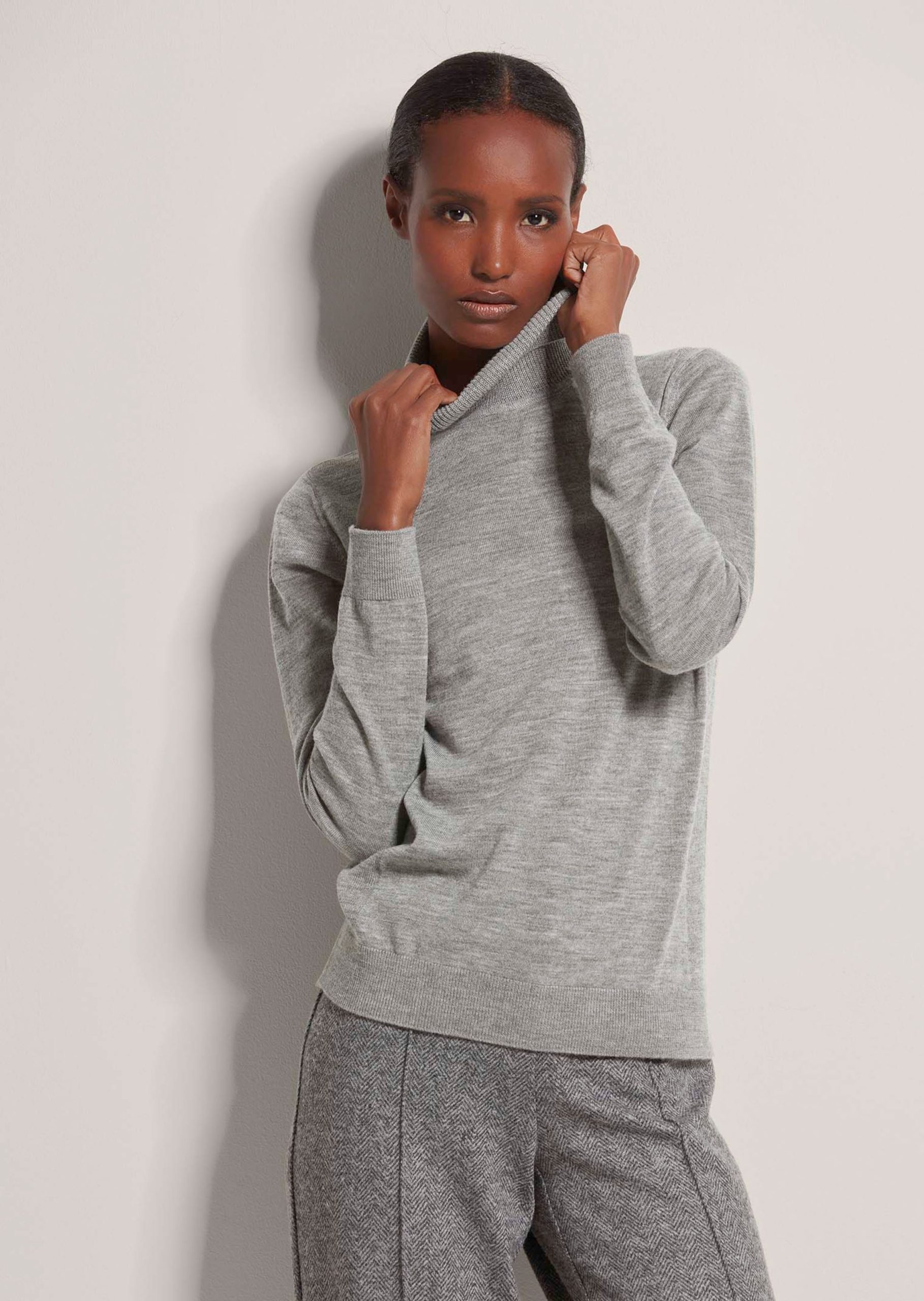 Rollkragen Pullover aus Wolle in graphit / melange | MADELEINE Mode