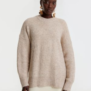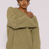 Oversize LONG Strickpullover mit Stehkragen FLAUSCHI Beige