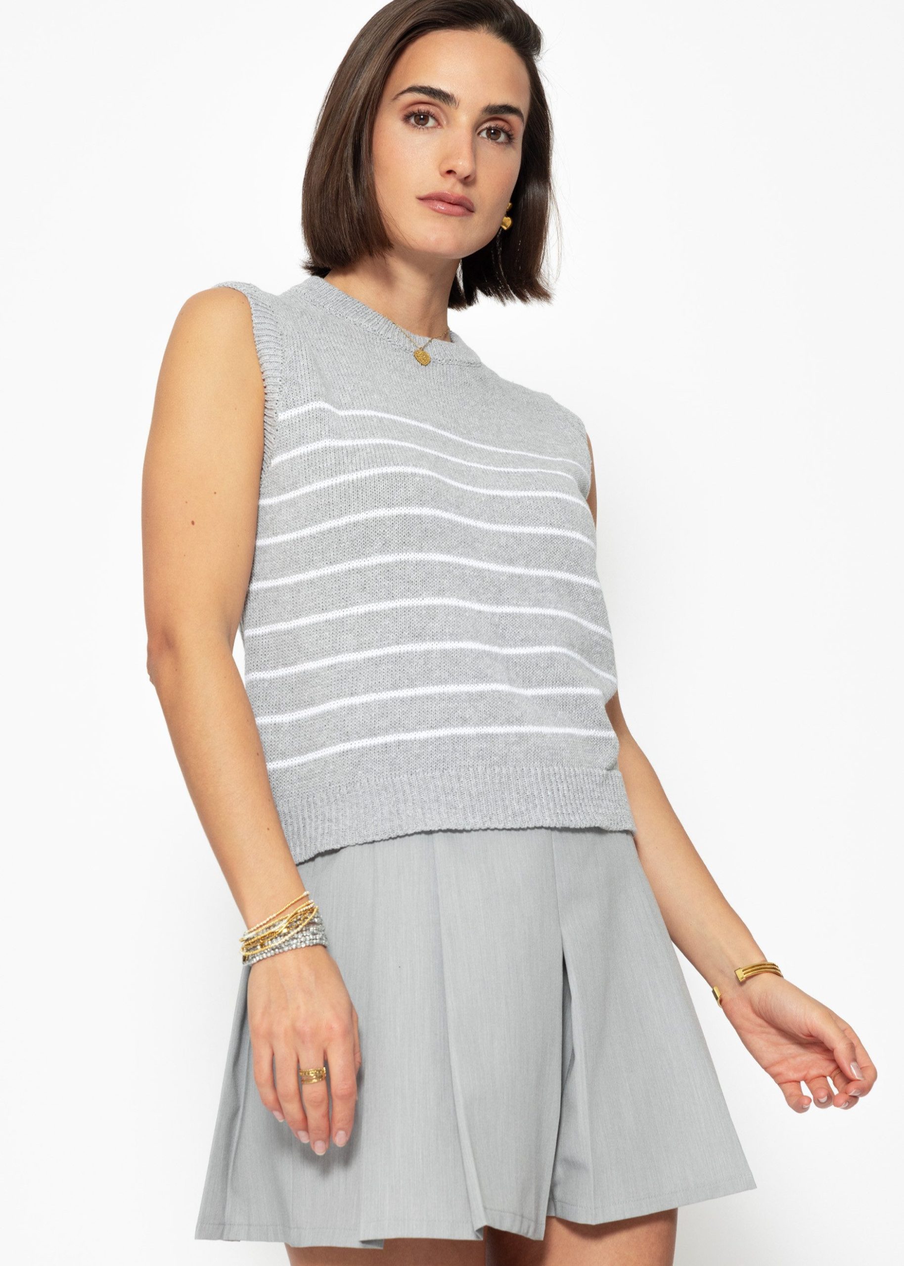 SASSYCLASSY Strickpullover Pullunder Damen gestreift mit Rollkragen Elegant Lässiger Strickpullunder mit Rollkragen in Streifenmuster Grau Beige