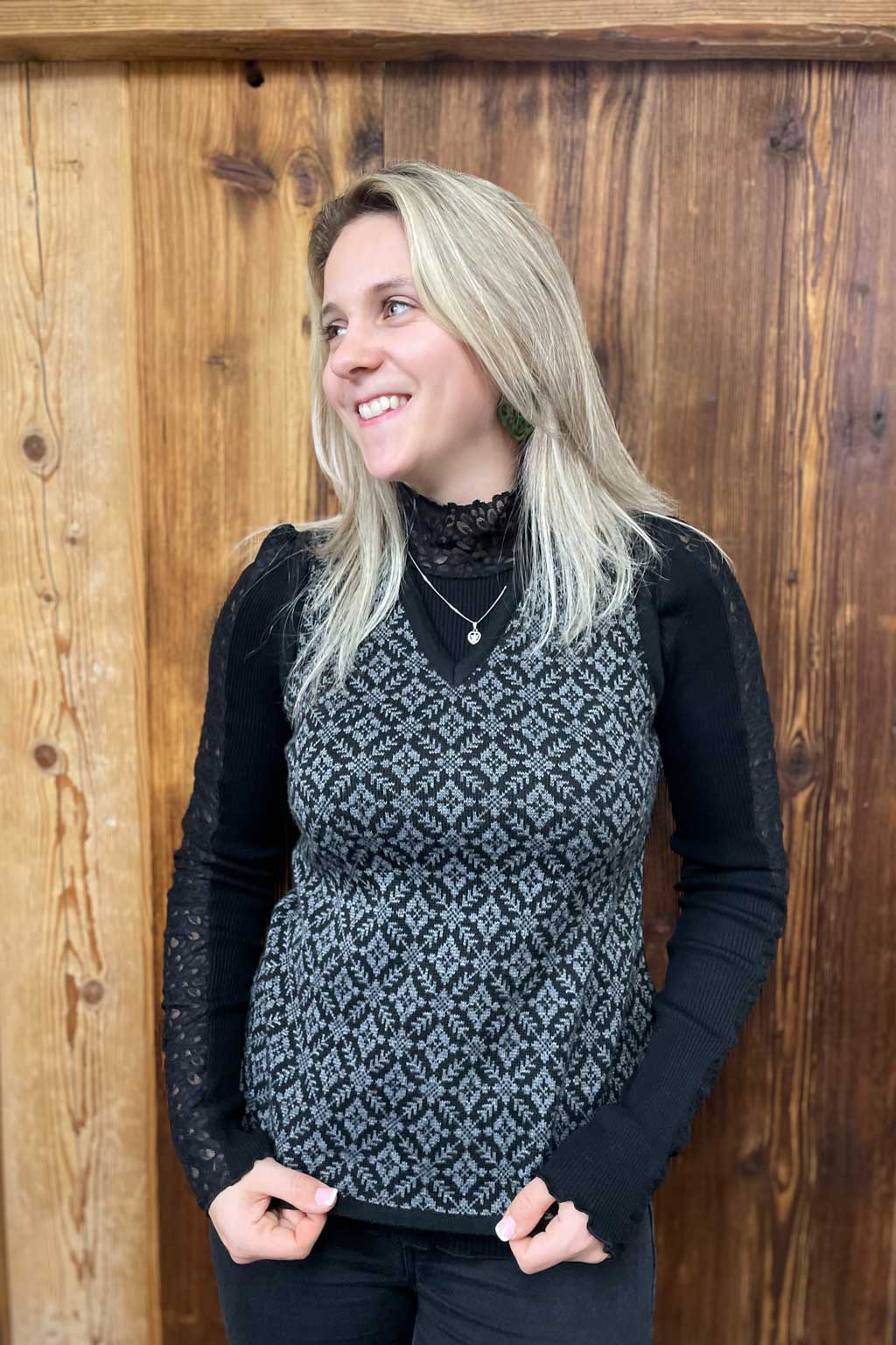 Strickpullunder „Betty“ schwarz weiß Hut und Tracht da Rädl Trachtenmoden und Accessoires für Damen, Herren, Kinder