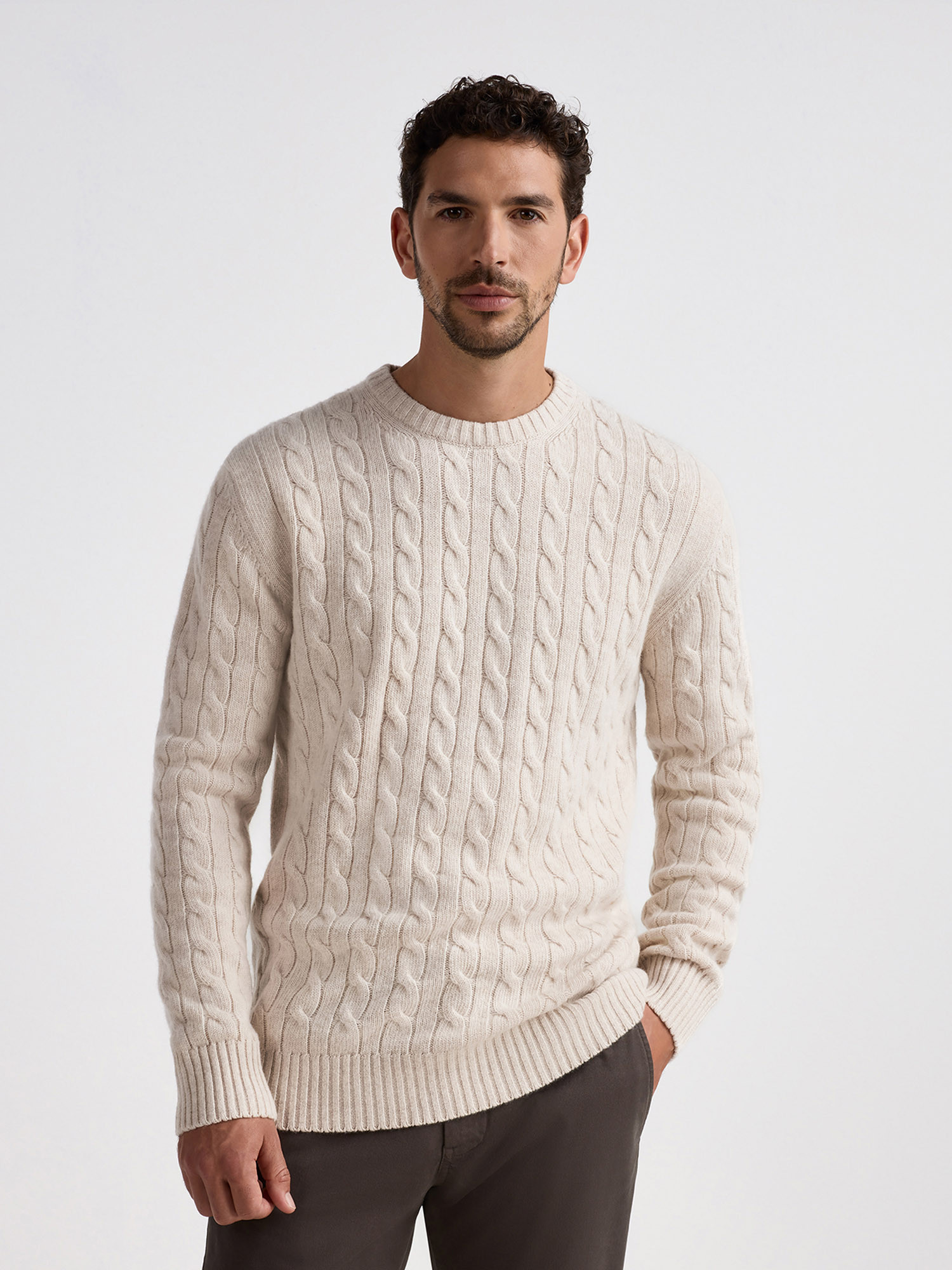 Nuuk Herren Zopfpullover Sand – Lammwolle – In 3 Längen Girav