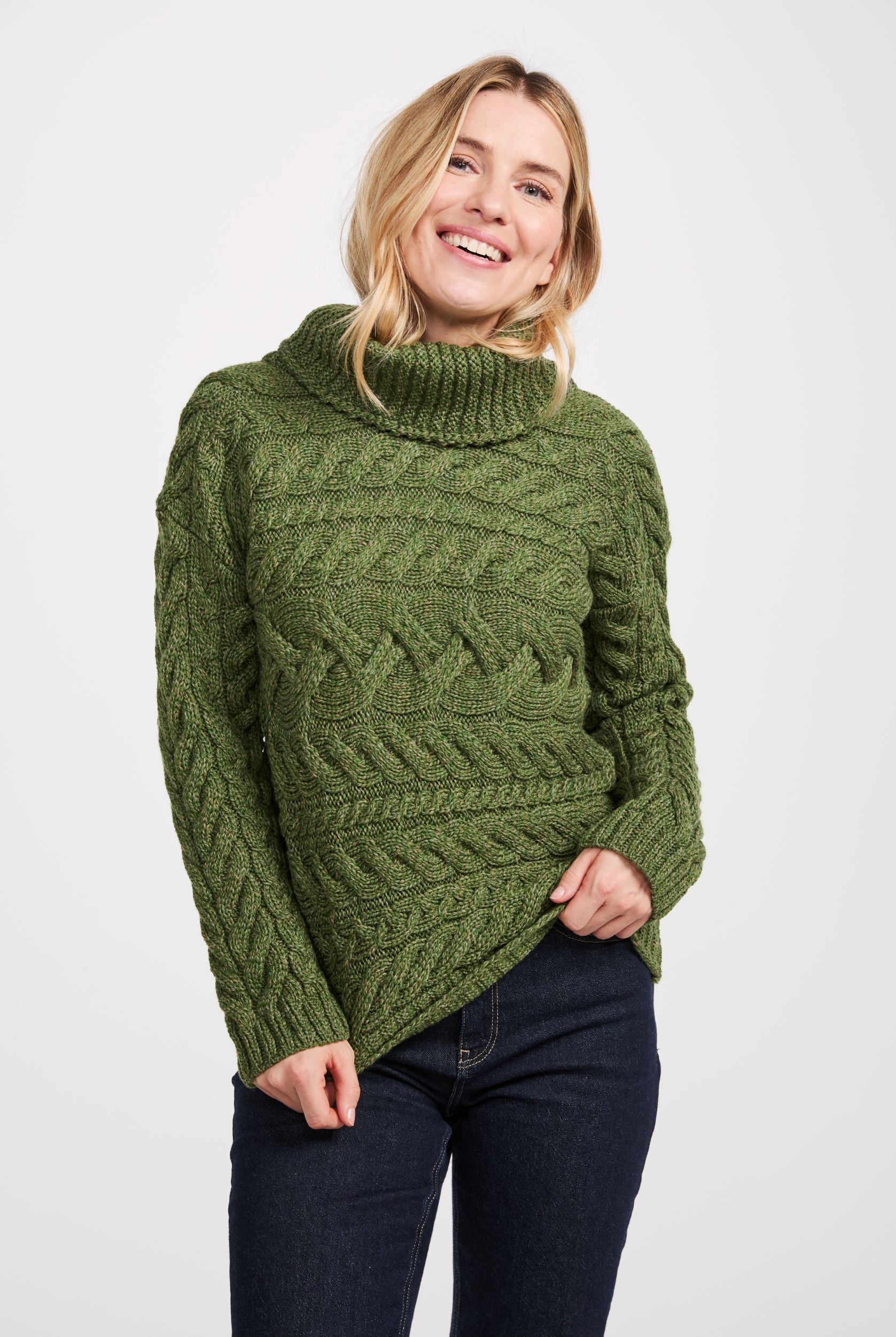 Derreen Aran Pullover mit horizontalem Zopfmuster Grün